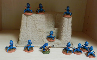 DeleteI needed a few "bugs" for some games, and someone alerted me to these plastic ones from the Myth boardgame. 2 boxes, 10 minis each, worked out to less than 1.5 dollars US. I wanted to do a quick paint job (or quick for me) without a lot of time spent on small details. They are suitably alien and nasty-looking.